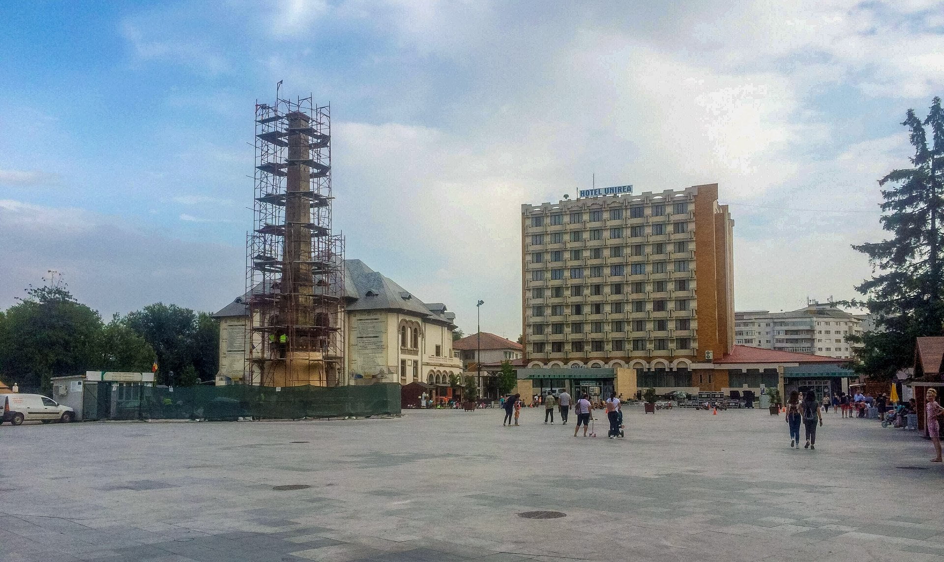 Fosta Grădină publică a Focșaniului, plină de castani seculari, a fost devastată pentru a face loc unor construcții imense, care stau și acum, la mai bine de șapte ani de la inaugurare, goale. În parcul din zona centrală, aleile sunt acoperite cu un praf de cretă care intră în ochii oamenilor la cea mai mică adiere de vânt, iar orice ploaie transformă locul într-o mocirlă. În fine, la fiecare Revelion, festival sau Zilele Focșaniului, dalele care acoperă Piața Unirii se sparg ca-n celebrul joc Tetris. Mega-proiectul de reabilitare a centrului civic al Focșaniului, în valoare de 8 milioane de euro, a demarat în 2007 și avea termen de execuție 18 luni. A întârziat doi ani. Scuza arhitectului responsabil: proiectul a fost modificat și s-au folosit materiale ieftine și de proastă calitate.